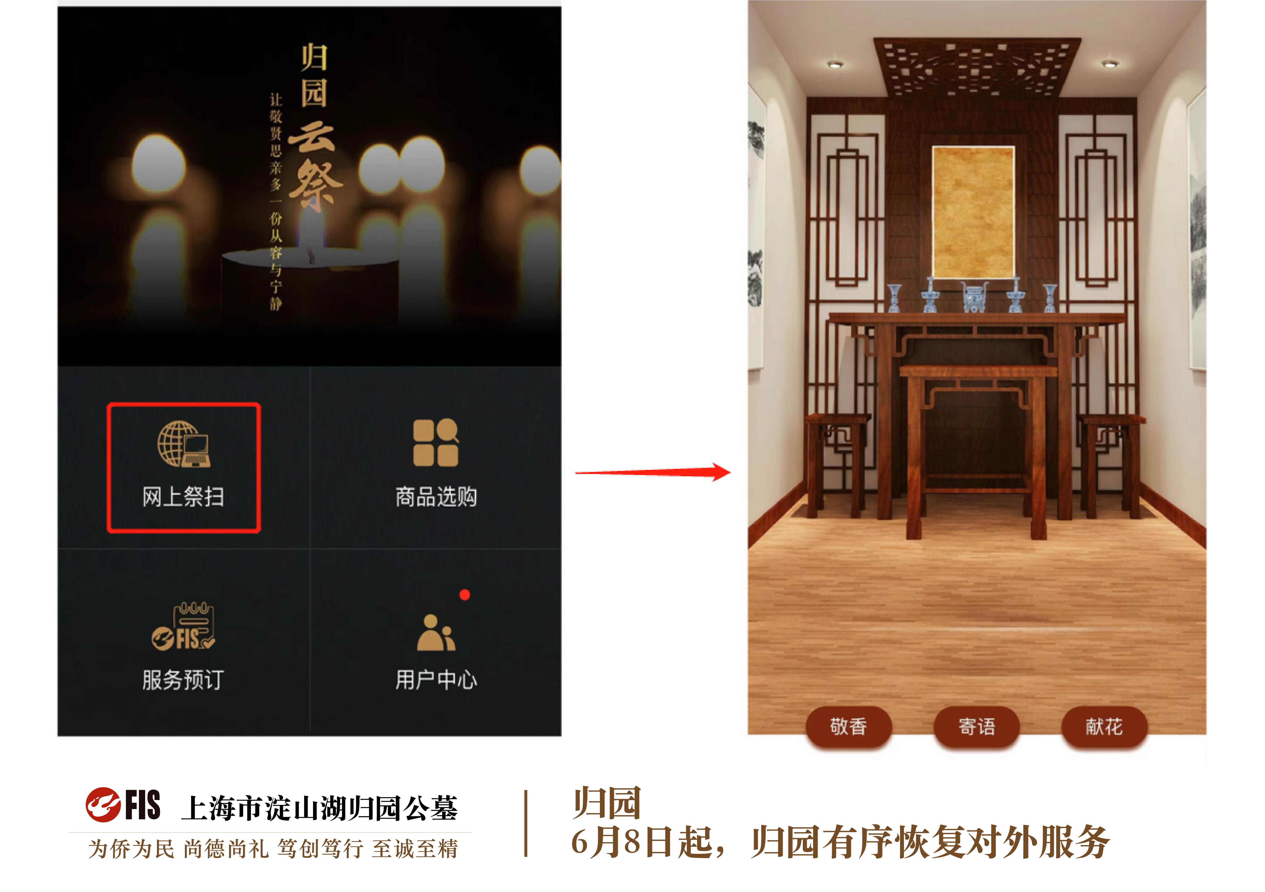 根据本市疫情防控形势和要求,归园将于6月8日起有序开园,逐步恢复祭扫、落葬等相关服务。