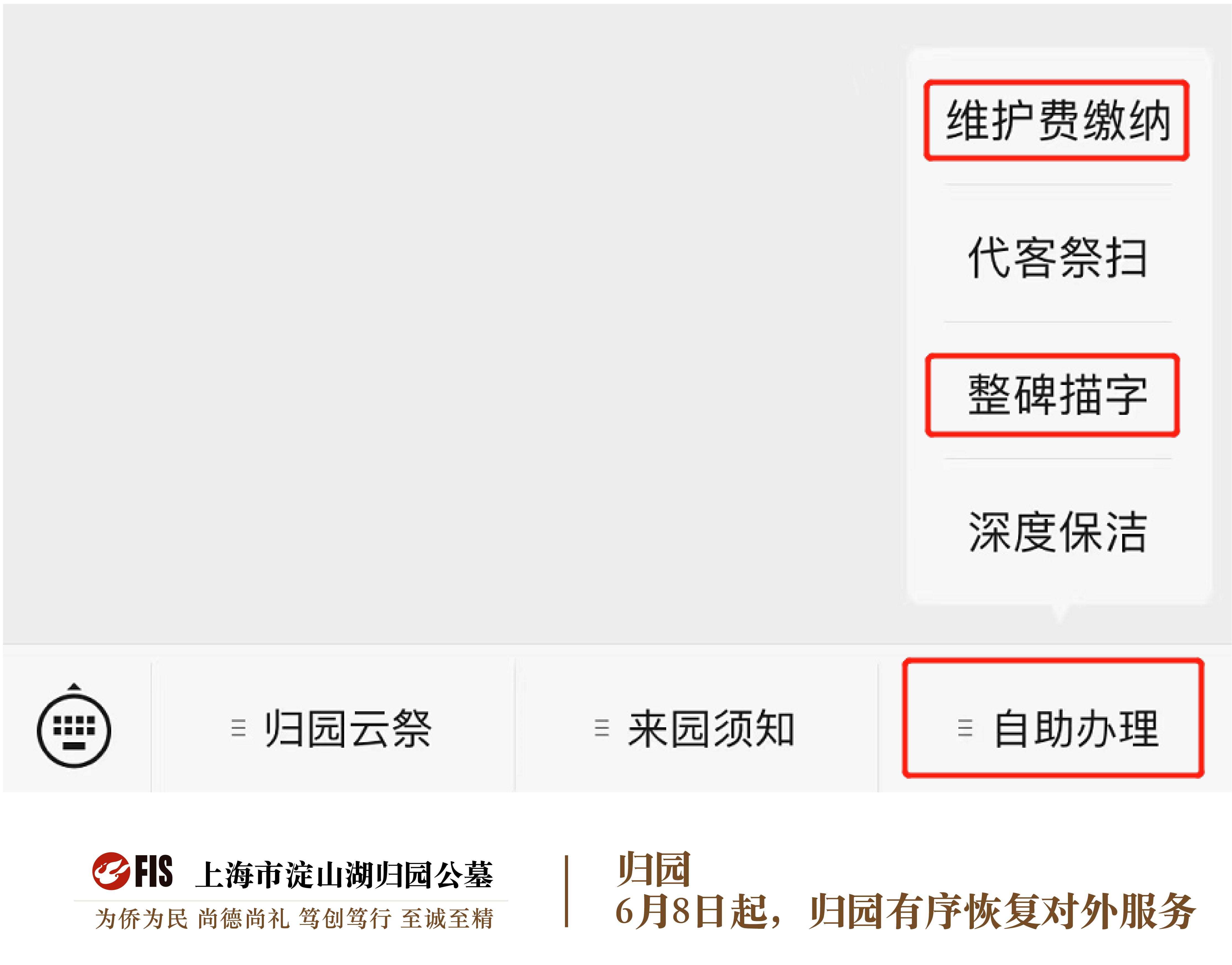 特殊时期,希望市民群众尽量通过网络祭扫、线上办理整碑描字或云祭缴纳维护费等服务。